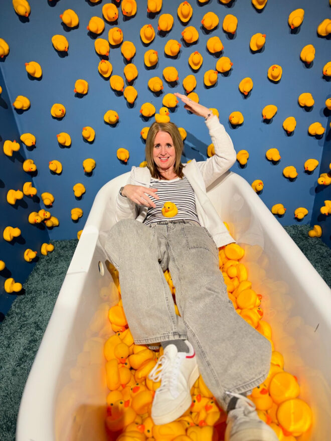 Top Tip – we arrived half an hour before our Bubble Planet time slot and found a little haven just around the corner. Canada Gardens is a lovely setting for a coffee stop with fountains and some super plush apartments to swoon over.